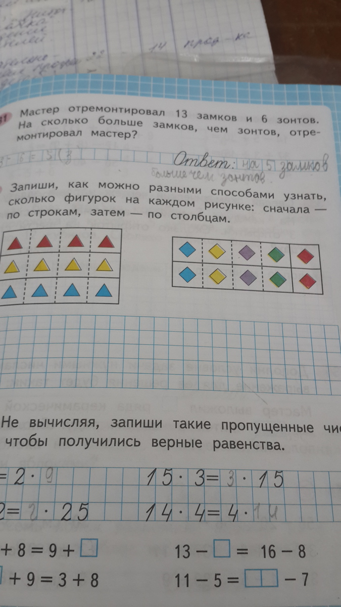 запиши как можно разными способами узнать сколько фигурок на каждом рисунке сначало по строкам затем по столбцам