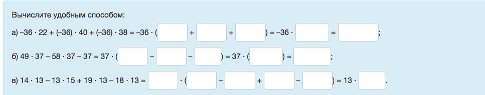 в каждом примере, нужно убрать за скобку(это уже сделано) повторяющийся множитель. в скобке нужно сложить оставшееся. пример: