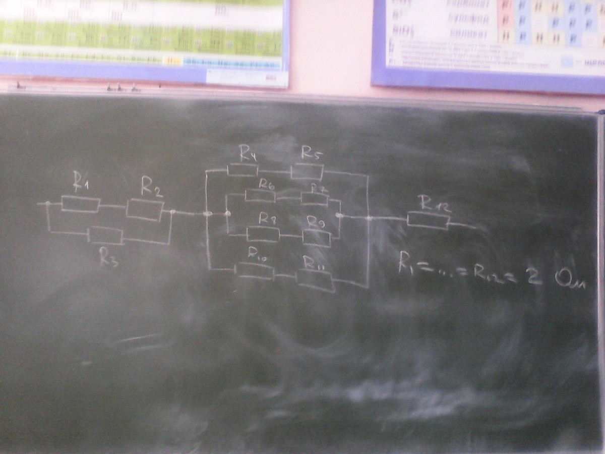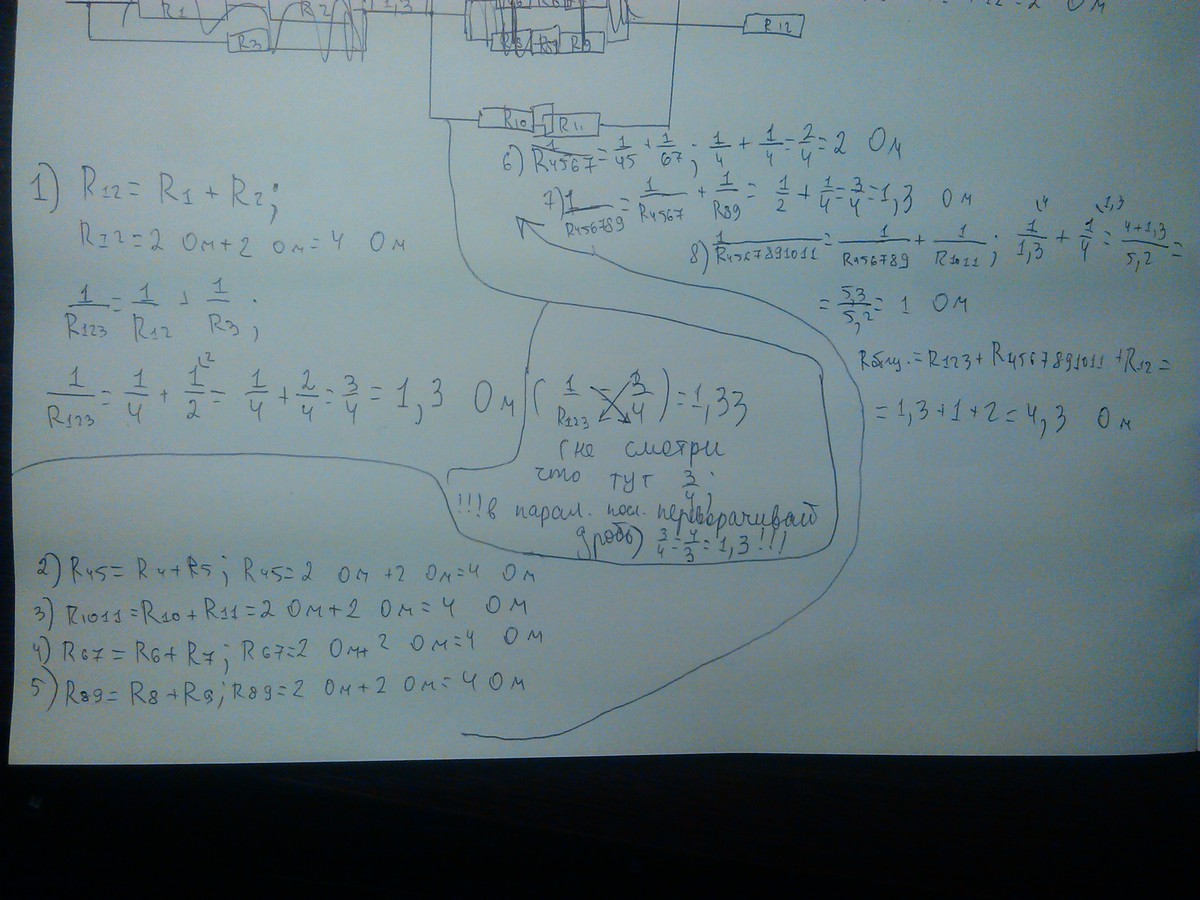 Ох какая цепь, мы таких трудных не делали... Посидел, порешал, получилось где-то 4,3 Ом