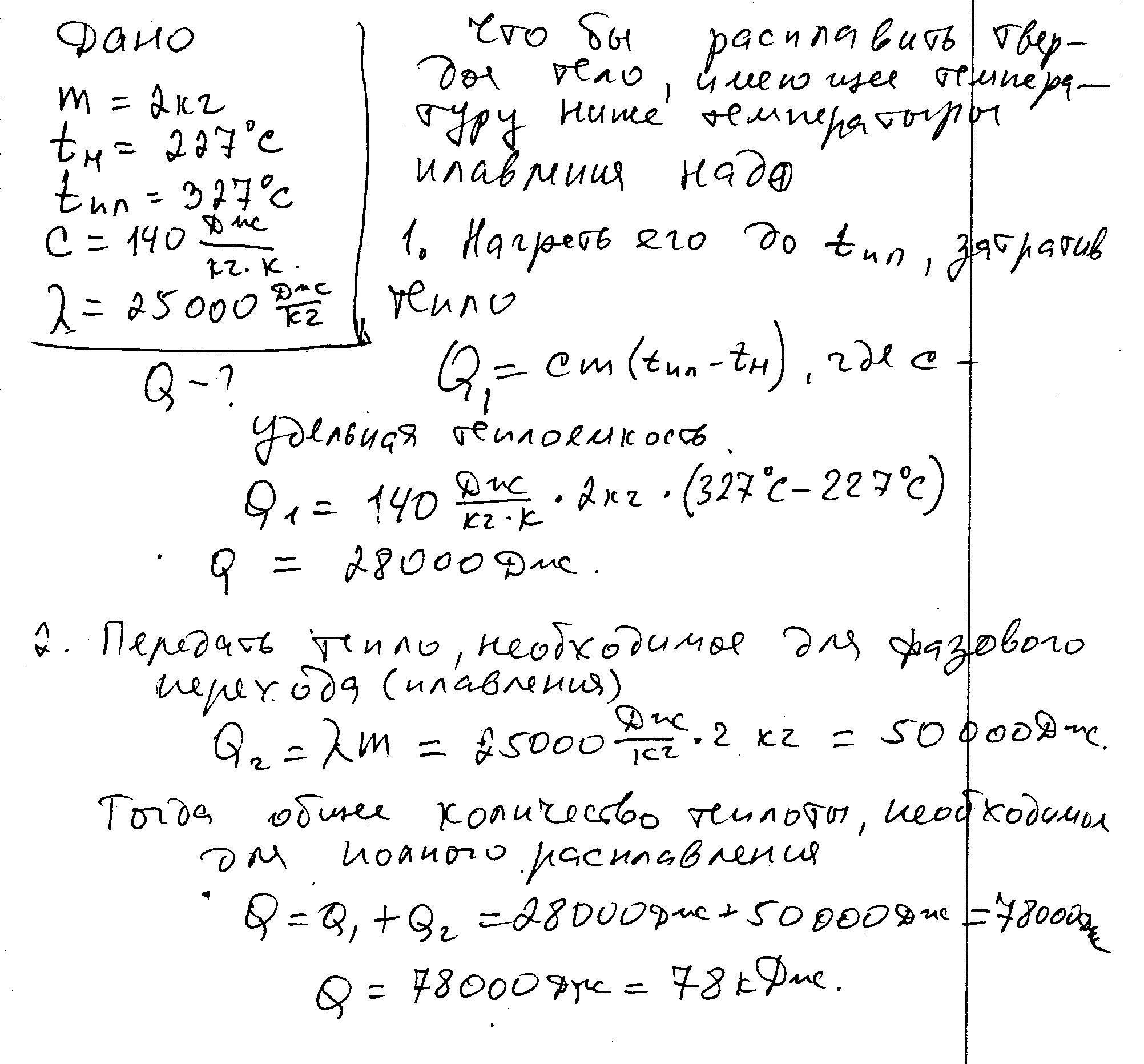 какое количество теплоты потребуется для плавления 2 кг свинца, имеющего температуру 227 градусов?