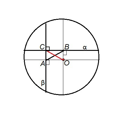 Обозначим середину хорды α буквой В, середину хорды β буквой А.