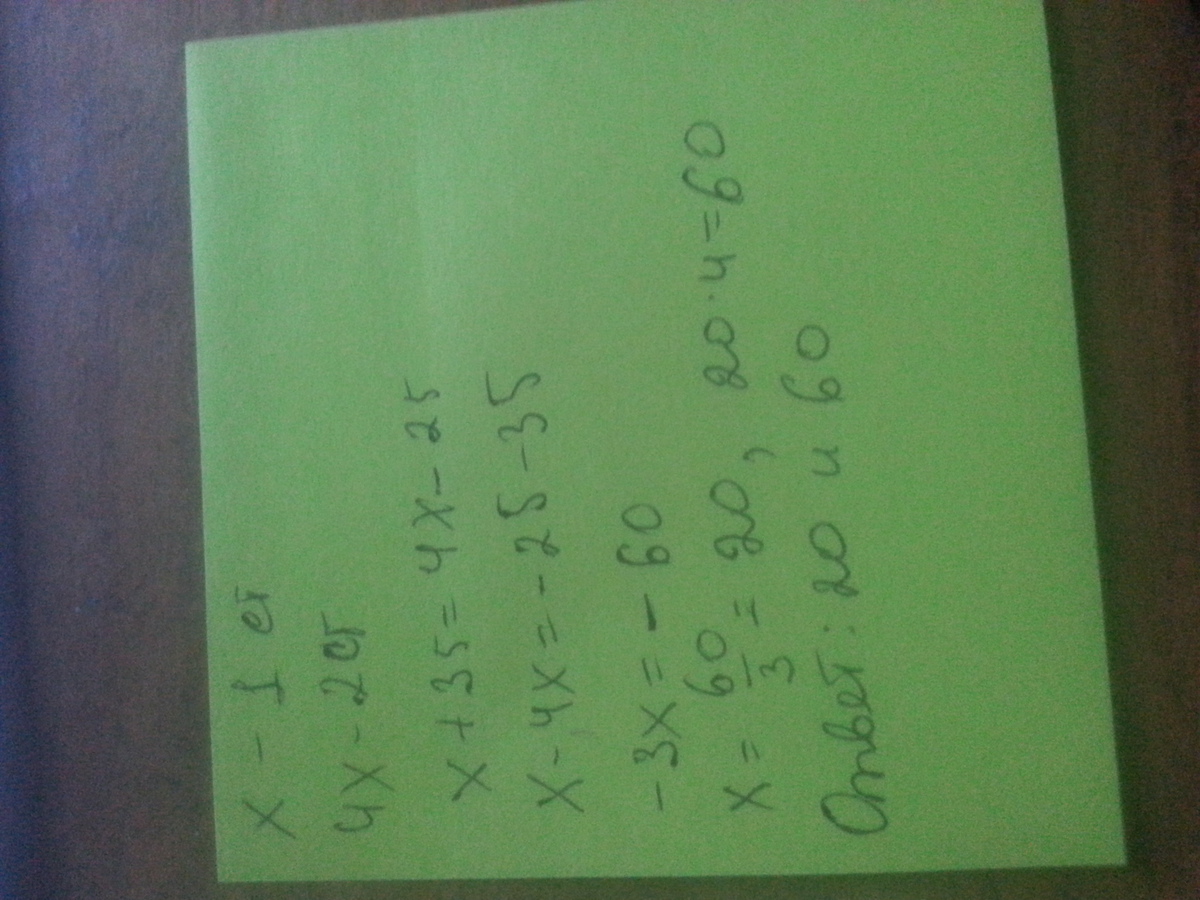 х+35=4х-2560=3хх=2020 машин было на первой стоянке.