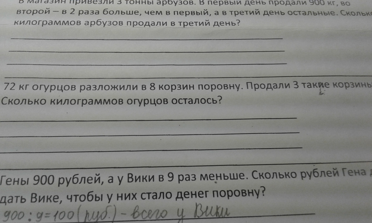 1) 72:8=9 - 9 огурцов в каждой корзине.