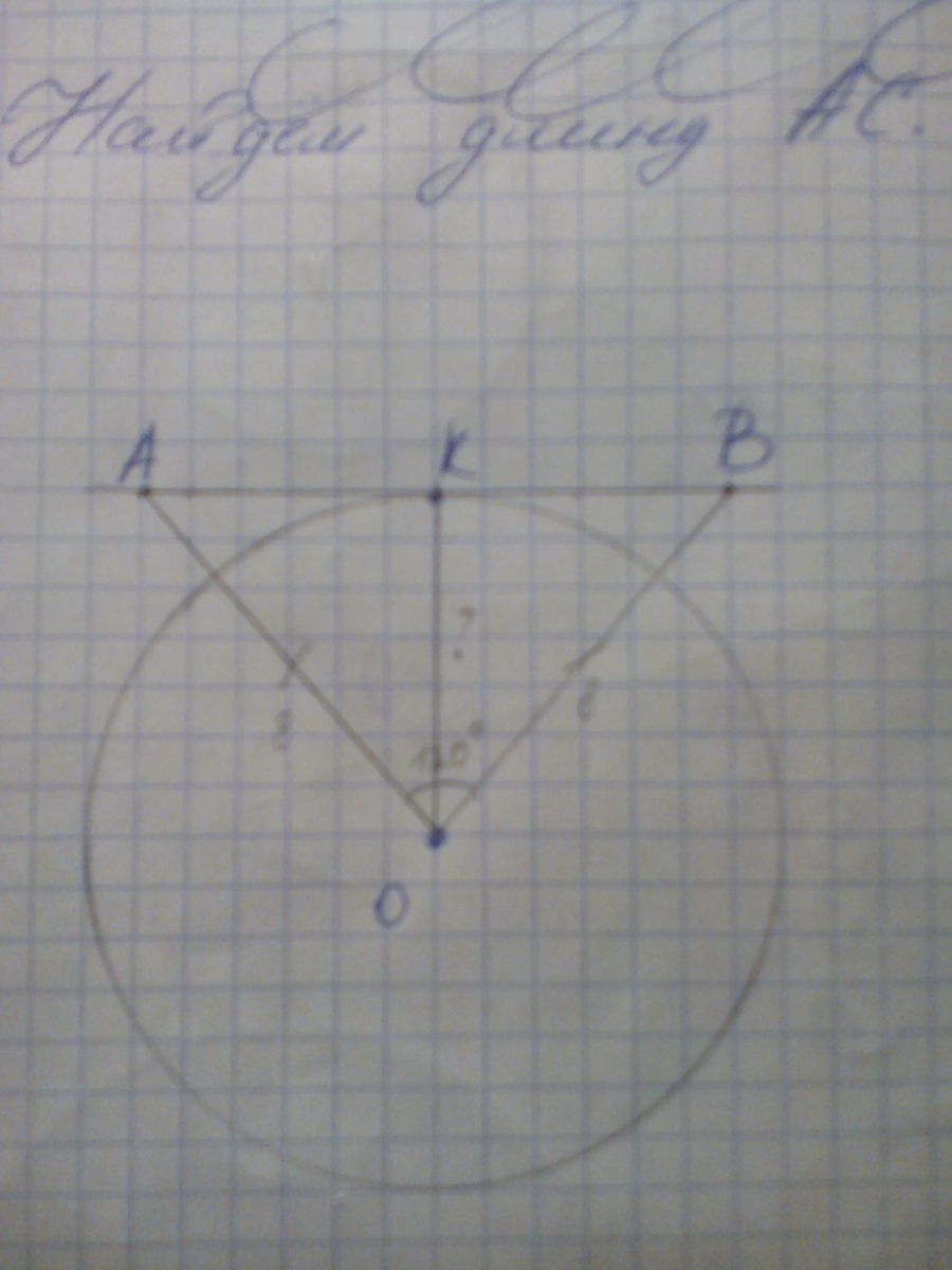 20 БАЛЛОВ!точка a и b лежат на касательной к окружности с центром О по разные стороны от точки касания, причем ОА=ОВ=8 см и угол АОВ=120 градусов . Найдите радиус. окружности