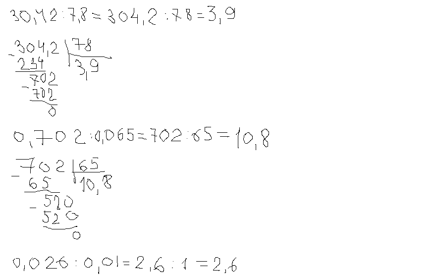 Помогите мне срочно надо 30,42:7,8= 0,702:0,065= 0,026:0,01= пожалуйста в столбик