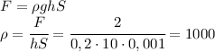 Жидкость налита в цилиндрический сосуд и давит на дно с силой F=2 H. Высота столба жидкости h=20 см,а площадь дна сосуда S=10 см². Определите, какая жидкость налита в сосуд.