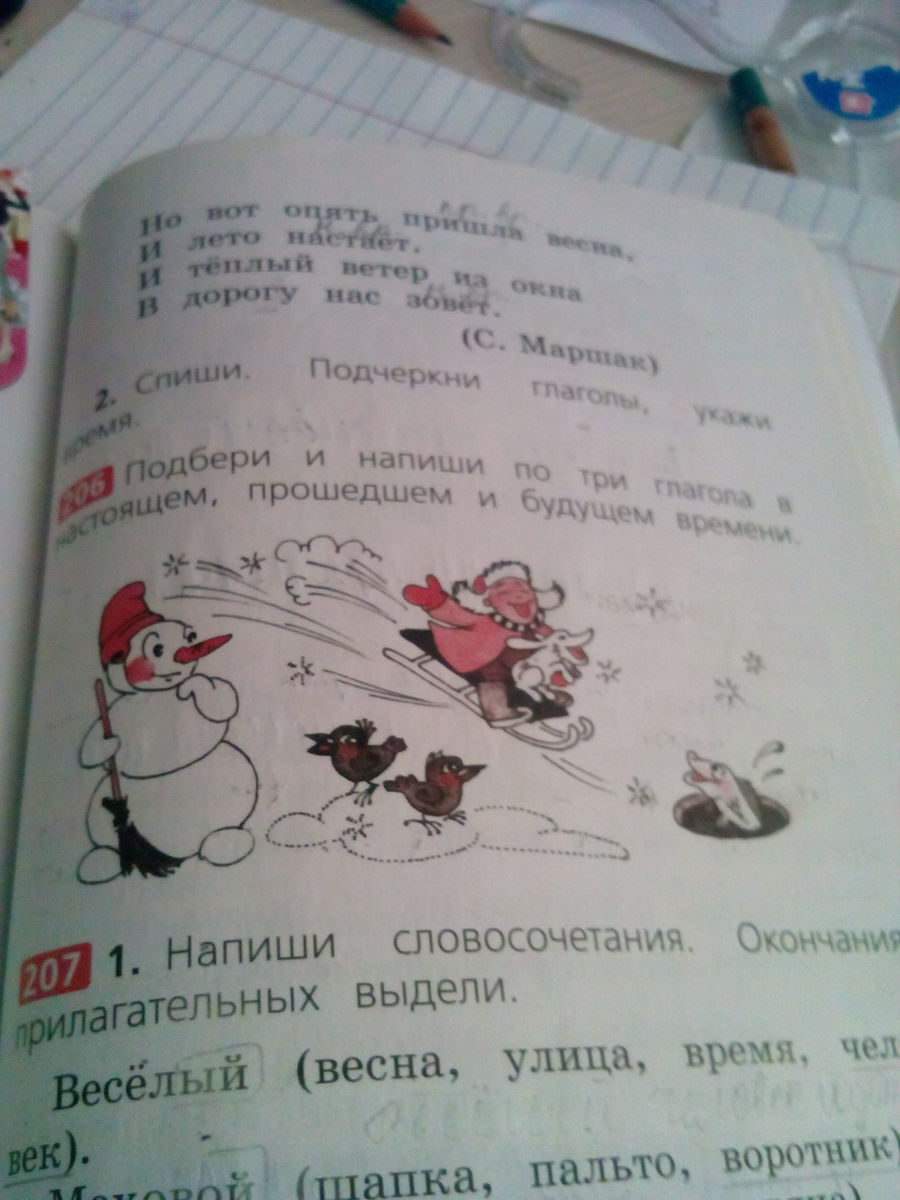 подбери и напиши по три глагола в настоящем ,прошедшем и будущем времени
