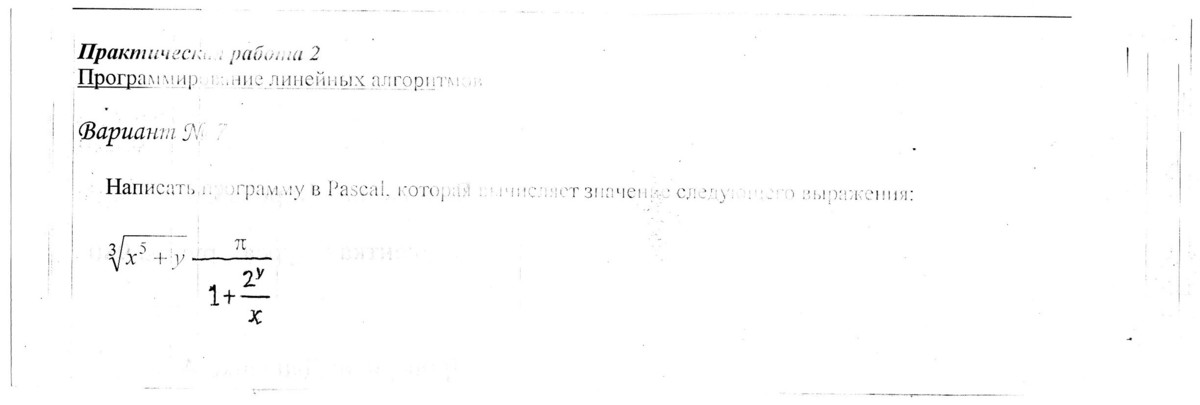writeln(exp(ln(x*x*x*x*x+y)*(1/3))*PI/(1+(exp(ln(2)*y)/x)))
