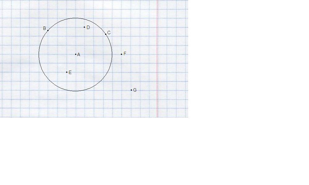 Начертите круг с центром А и радиусом 2 см.Отметьте две точки: