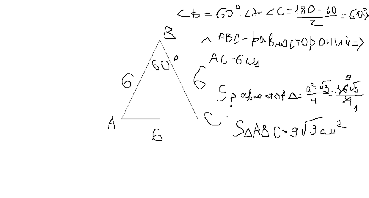 Найдите площадь равнобедренного треугольника, если его боковая сторона равна 6 см, а угол при вершине равен 60о. 3. Найдите площадь прямоугольника, если его диагональ равна 13 см, а одна из сторон 5 см. заяньки помогите******