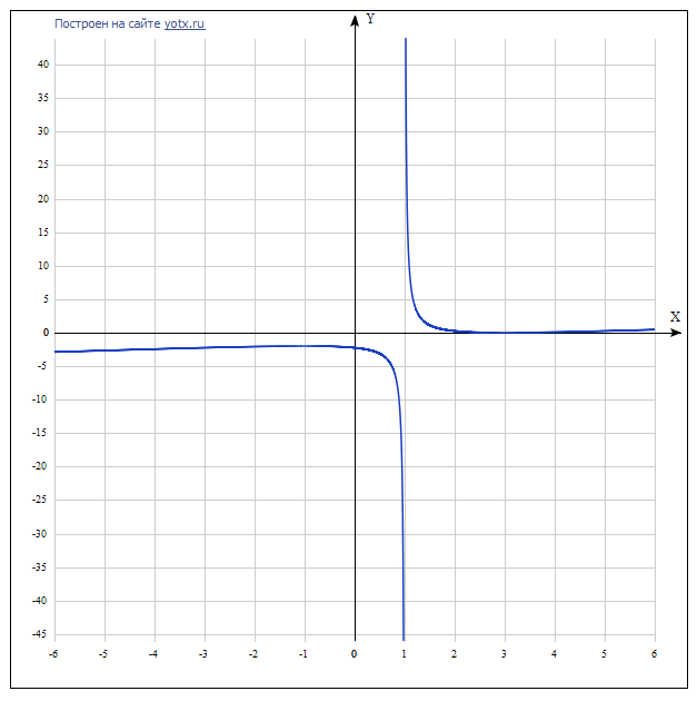 Вертикальные асимптоты Есть:x1 = 1 Горизонтальные асимптоты Горизонтальные асимптоты найдём с помощью пределов данной функции при x->+oo и x->-oo 2 (3 - x) lim --------- = -oo x->-oo4*(x - 1) значит,горизонтальной асимптоты слева не существует 2 (3 - x) lim --------- = oo x->oo4*(x - 1) значит,горизонтальной асимптоты справа не существует