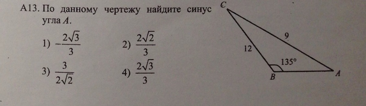 sin A = (12 *sin 135)/9= 4/3 sin 135