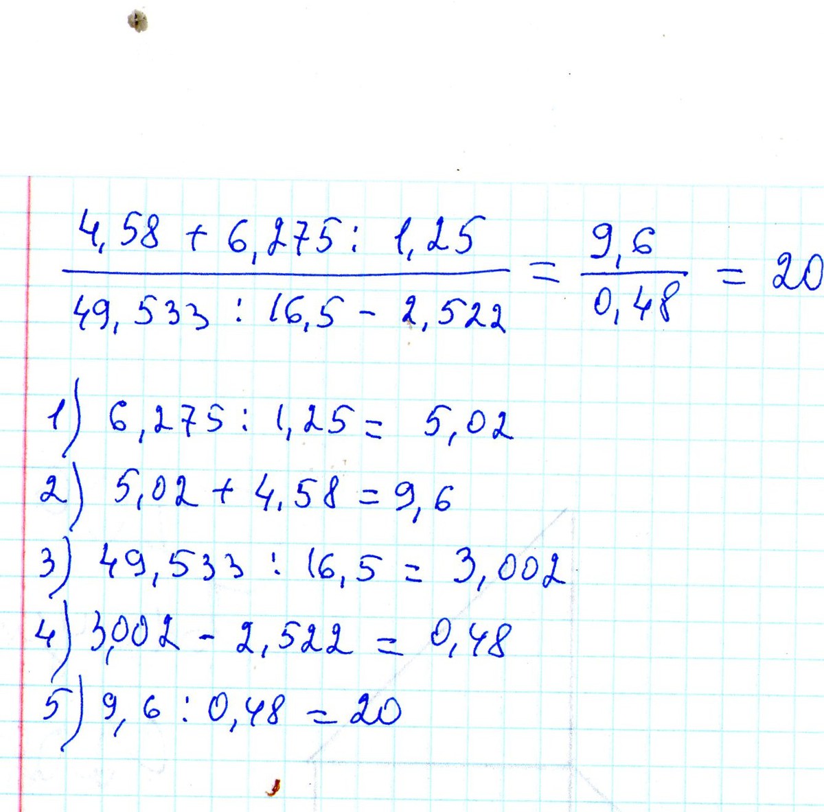 4.58+5.02/3.002-2.522 = 9.6/0.48 =20