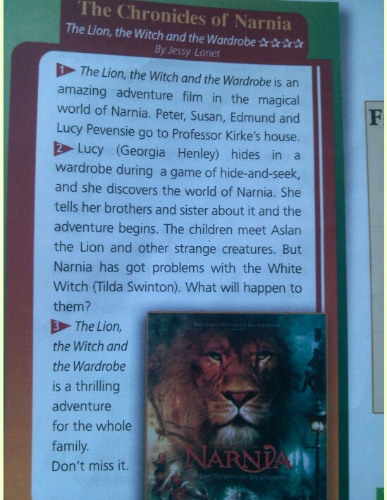 Зэ лайон, зэ вич энд зе вардроб из эн амэйзинг адвенчер филм ин зэ мэджикал ворлд оф нарниа. Пите, Сьюзан, Эдманд фтв люси пэвэнси гоу ту профессор Киркс хаус. Люси(Джеоргиа хенли) хайдс ин э вардроб дьюринг э гейм оф хайд-эн-сик, энд ши вискаверс зэ ворлд оф нарниа. ши телс хе бразерс энд систер абаут ит энд зэ адвечер бегинс. Зэ чилдрен мит аслан зэ лайон энд азэр стрэндч криачерс. Бат нарниа хэз гот праблемс виз зэ вайт вич. Вот вил хэпен то зэм? Зэ лайон, зэ вич энд зэ вардроб из э срилинг адвенче фо зэ хоул фэмили. Донт мисс ит