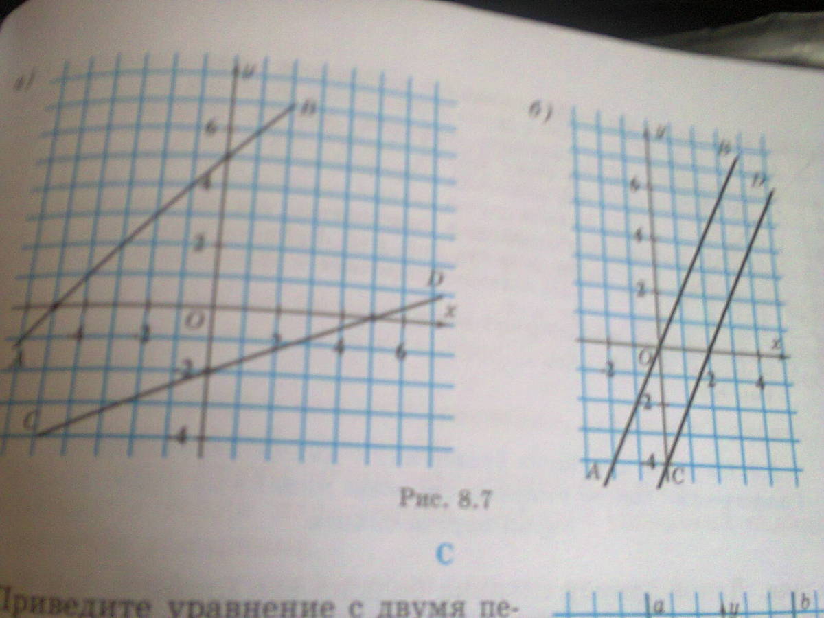 а рисунке 8.7 а,б построены графики уравнений.По графику составьте уравнение.Прошу помогите