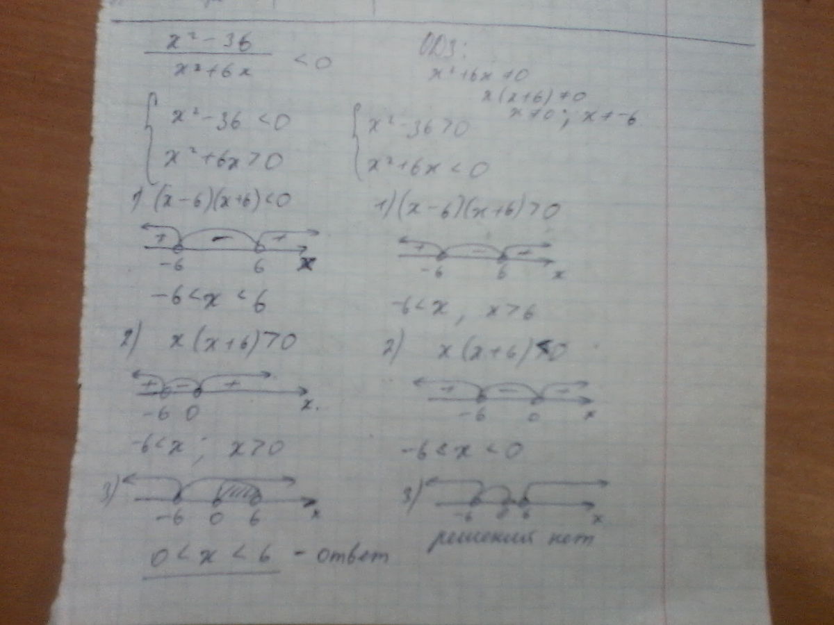 (x-6)(x+6)/(x(x+6)) < 0 x≠ -6 (x-6)/x <0 ; x(x-6) <0 x ∈(0 ;6)