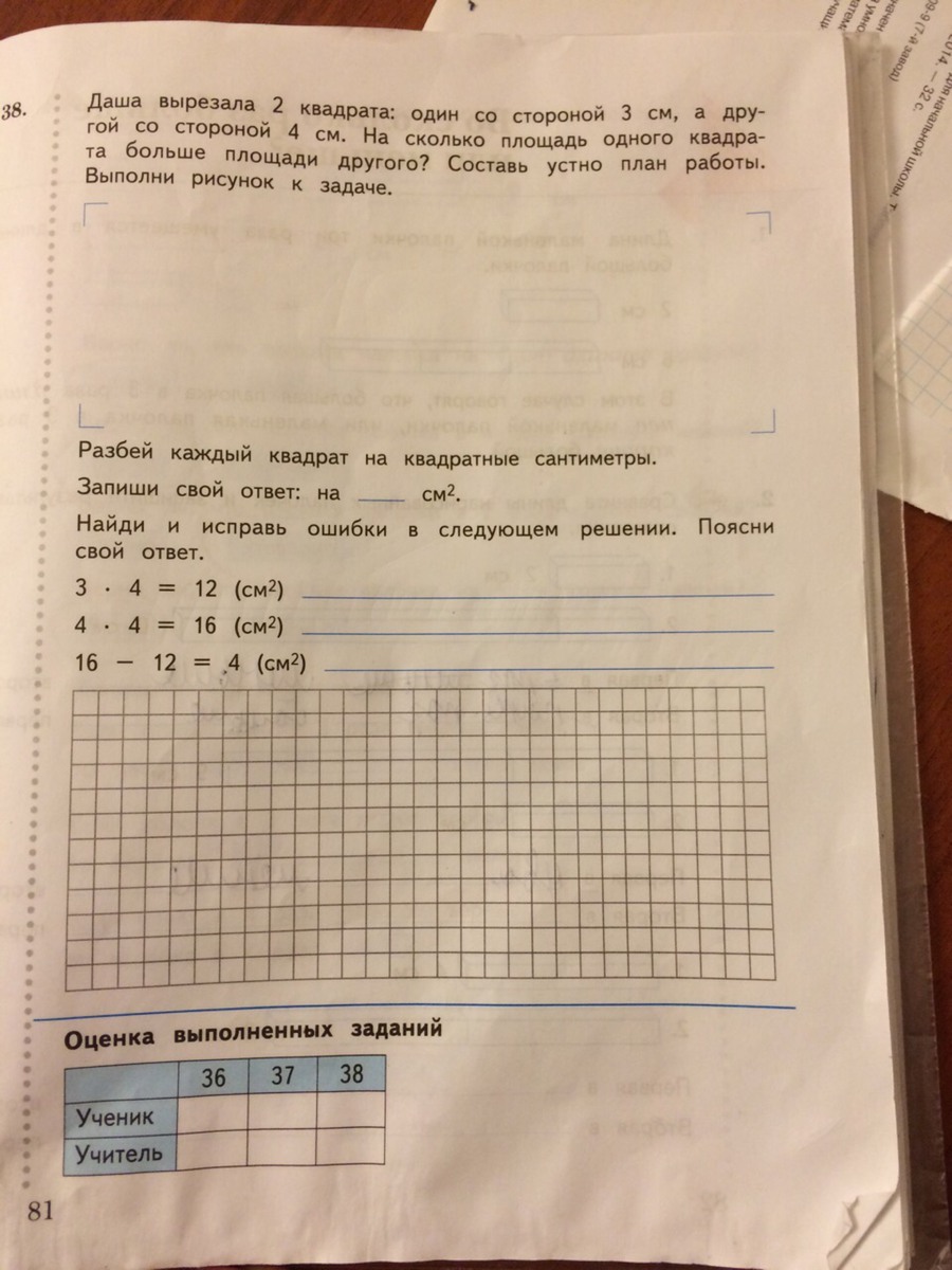 3)16 - 9 = 7(кв.см)
