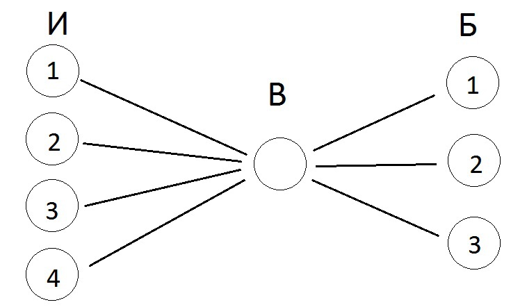 Из Иваново во Внуково ведут четыре разных дороги, а из Внуково в Бабкино - три дороги. сколькими способами можно проехать из Иваново в Бабкино через Внуково? Изобразите соответствующий граф.