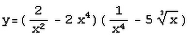 y ' =(2/x² -2x^4) ' *(1/x^4 -5∛x) + (2/x^2 - 2x^4) *(1/x^4 -5∛x) ' =
