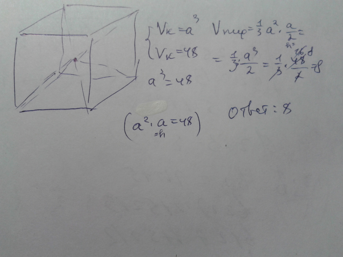 Объем куба равен 48. Найдите объем пирамиды, основанием
