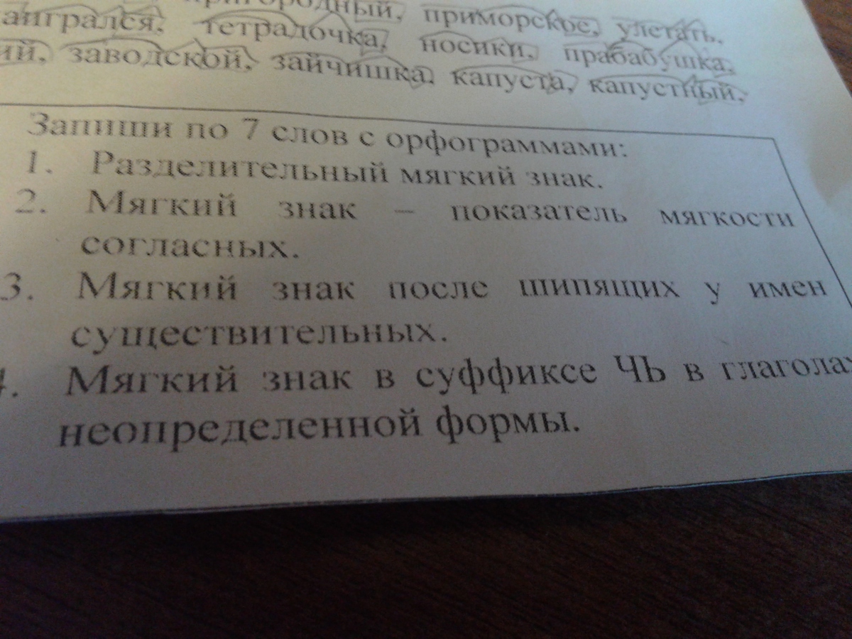 2)для мягкости согл.- пять, рояль, моль, письмо, просьба, мальчик, пальчик.