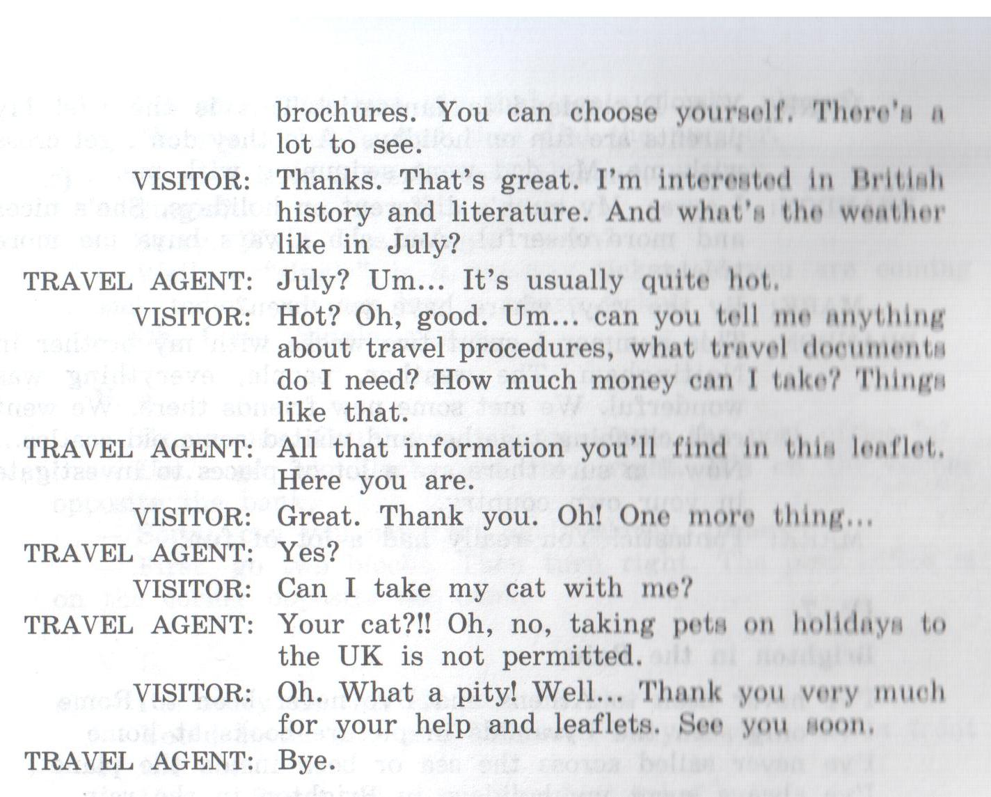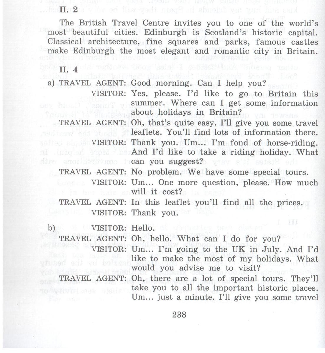 Туристический агент: О, есть множество специальных туров. Мы можем показать вам все важные исторические места. Эм...подождите минутку. Я дам вам несколько туристических брошур. Вы можете выбрать для себя. Вы можете много увидеть.