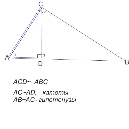 Подобие треугольников по двум углам: угол ВАС=ДАС (общий для двух треугольников), угол ВАС=углуАДС=90град