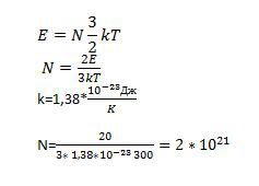 Гелий находится при температуре 27ºС. Кинетическая энергия хаотического движения всех молекул газа составляет 10 Дж. Определить полное число молекул газа.