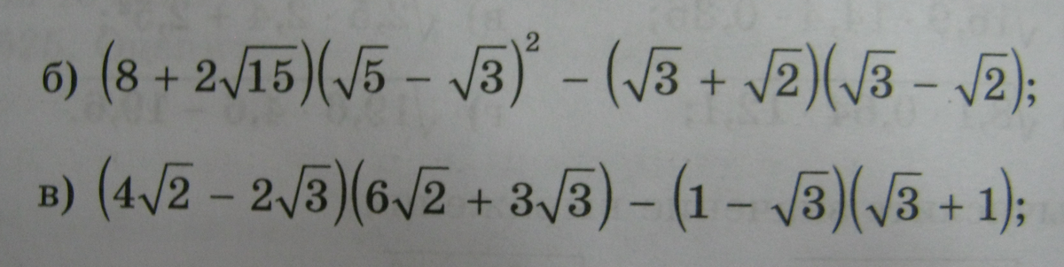 (8+2корня кв из 15)(кор кв из5-кор.кв из3)в квадр-(кор.кв из 3+кор.кв из2)(кор.кв из3-кор.кв из2)=(8+2кор.(8кв из15)(5-2кор кв из 15+3)-(3-2)=(8=2кор .кв из15)(8-2кор.кв. из 15)-1=64-4*15-1=64-60-1=3