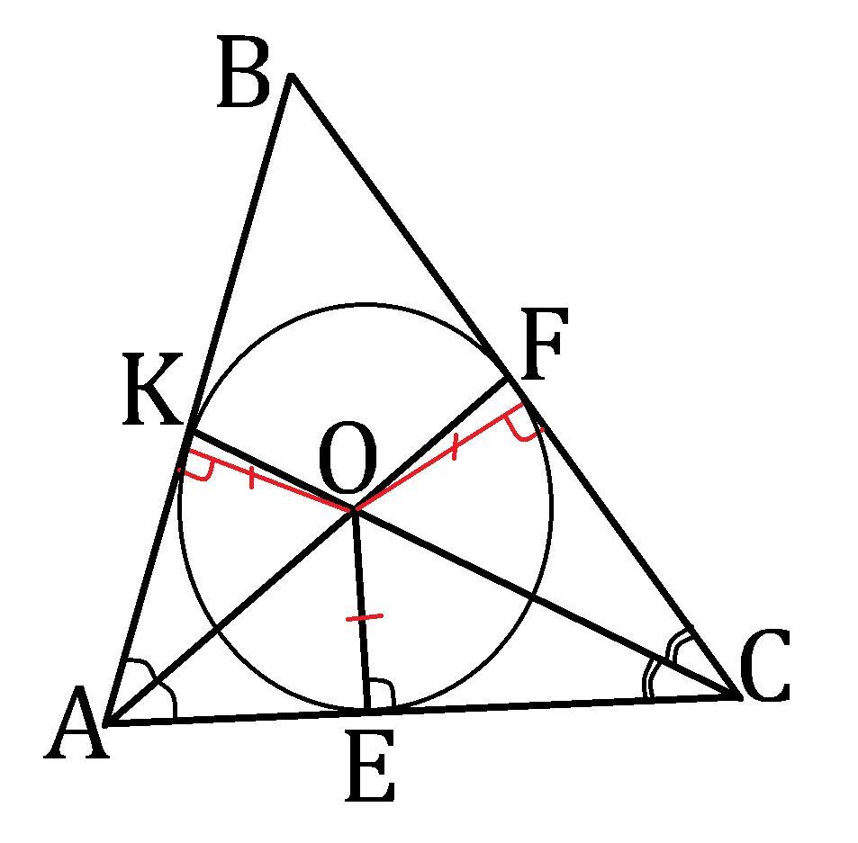 Центр вписанной окружности это точка пересечения биссектрис, AF∩CK=O ⇒ О - центр вписанной.