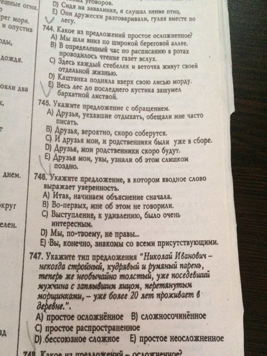 745 - d) в данном случае слово друзья является обращением, в остальных либо подлежащим либо дополнением