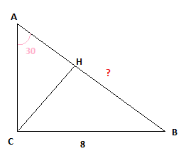 В треугольнике авс угол с равен 90 градусов сн высота вс=8, sin a= 0,5