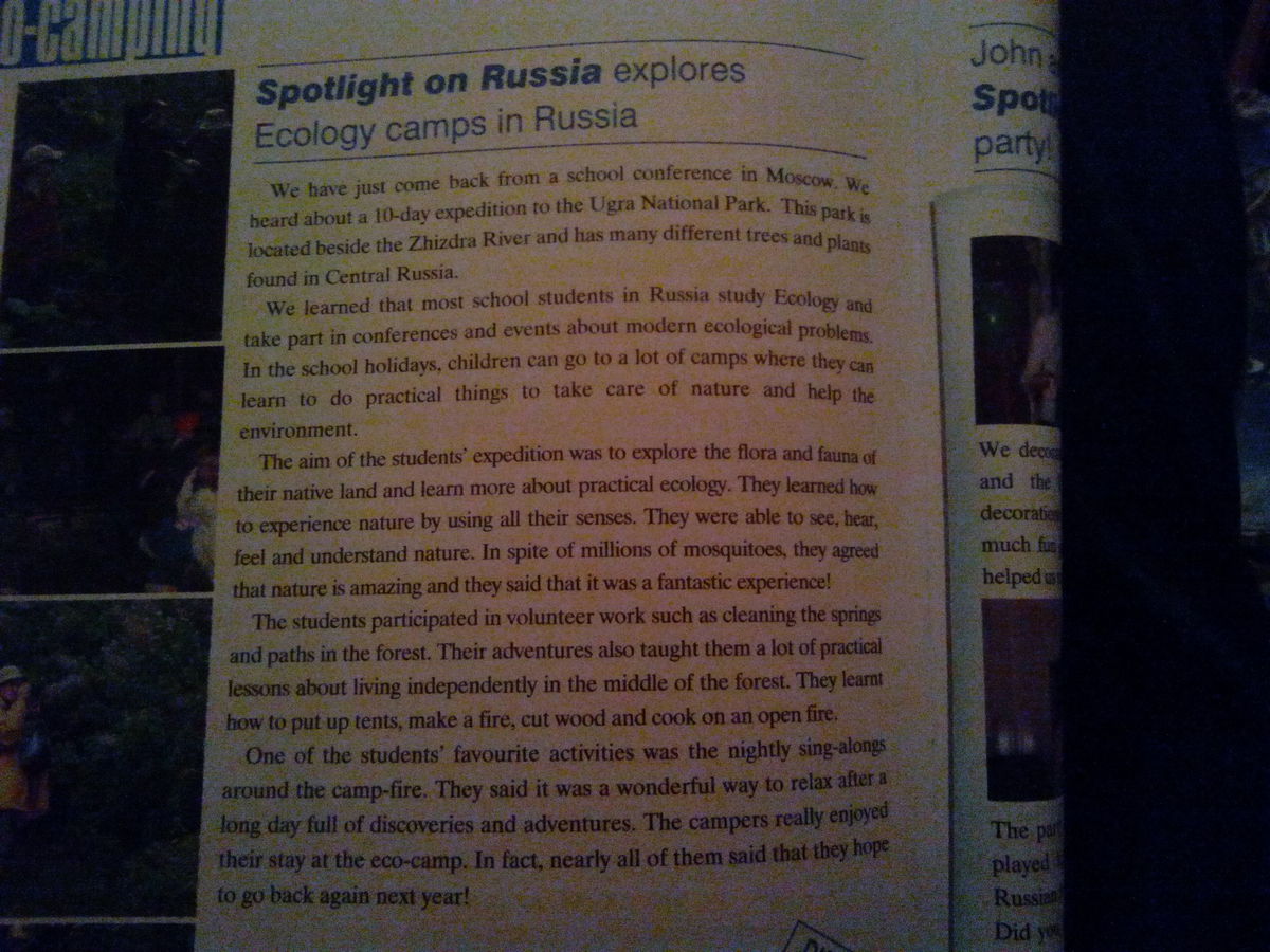 Мы только что вернулись с школьной конференции в Москве. Мы слышали про 10 дневную экспедицию в нац. парк. Этот парк размещен рядом с речкой и имеет много деревьев и растений которые были найдены в Центральной России.