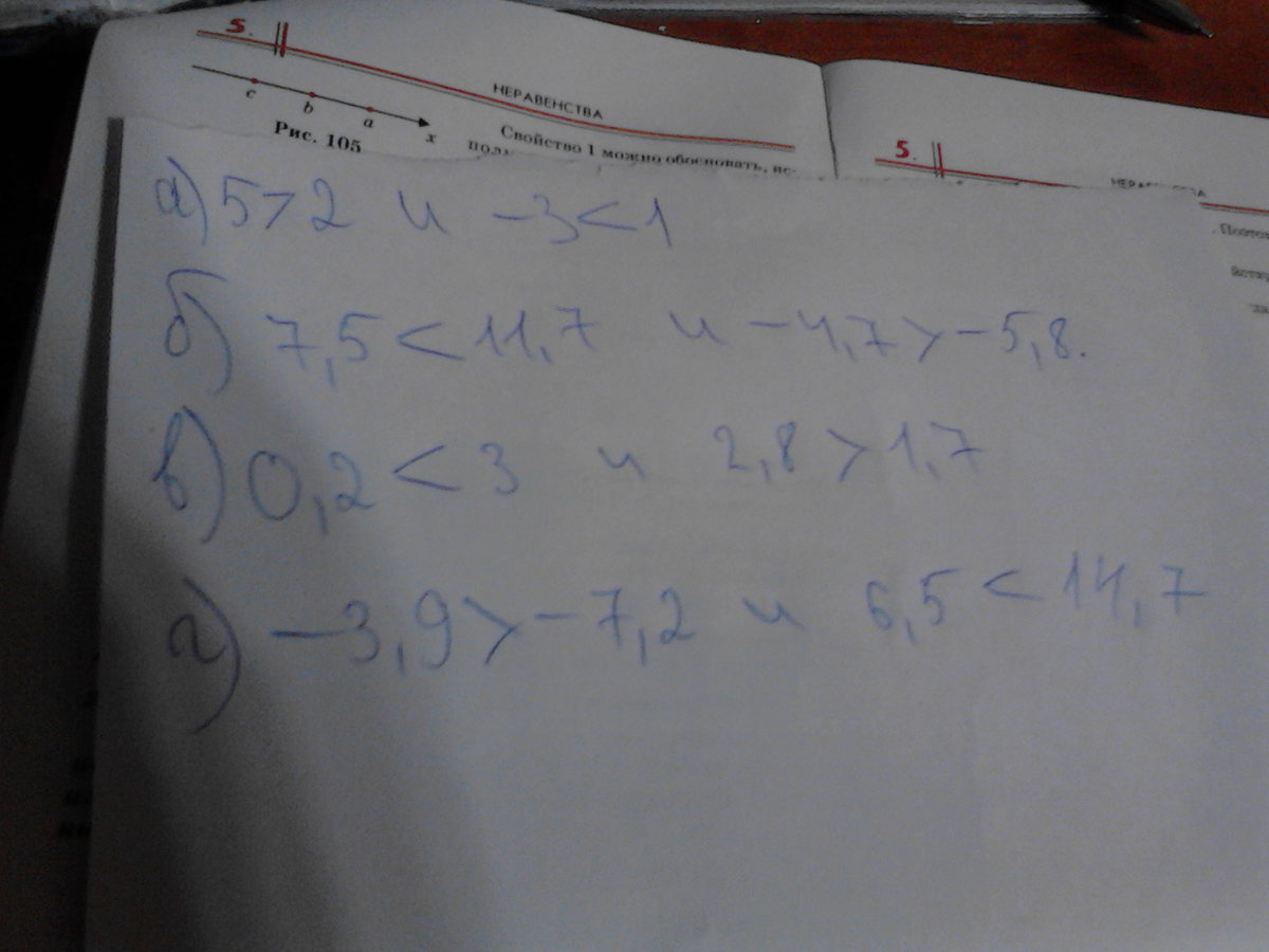 б) 7,5 < 11,7 и -4,7 > - 5,8 .