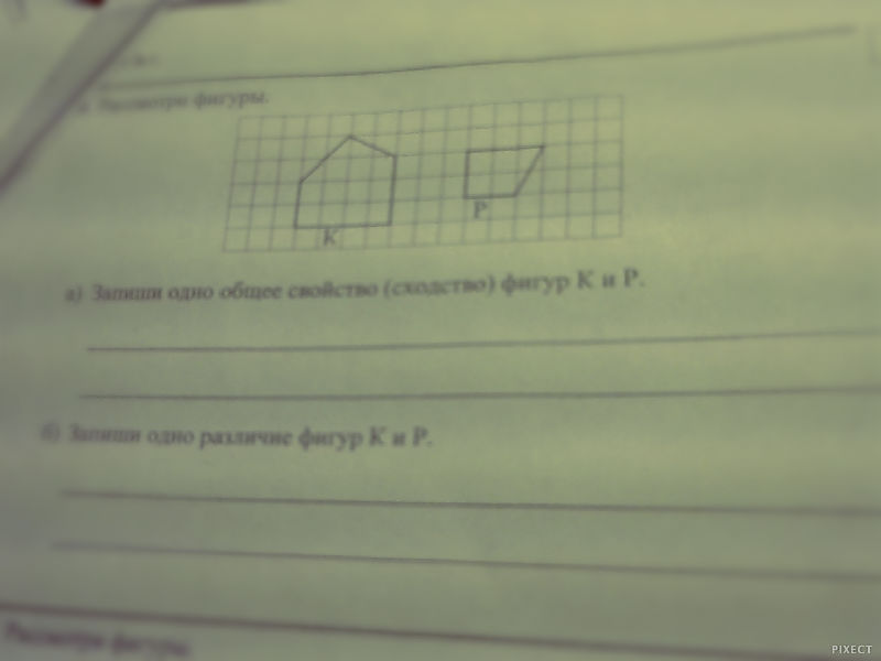 б) различное кол-во углов, сторон; у одного многоугольника есть острый угол, а у другого нет.