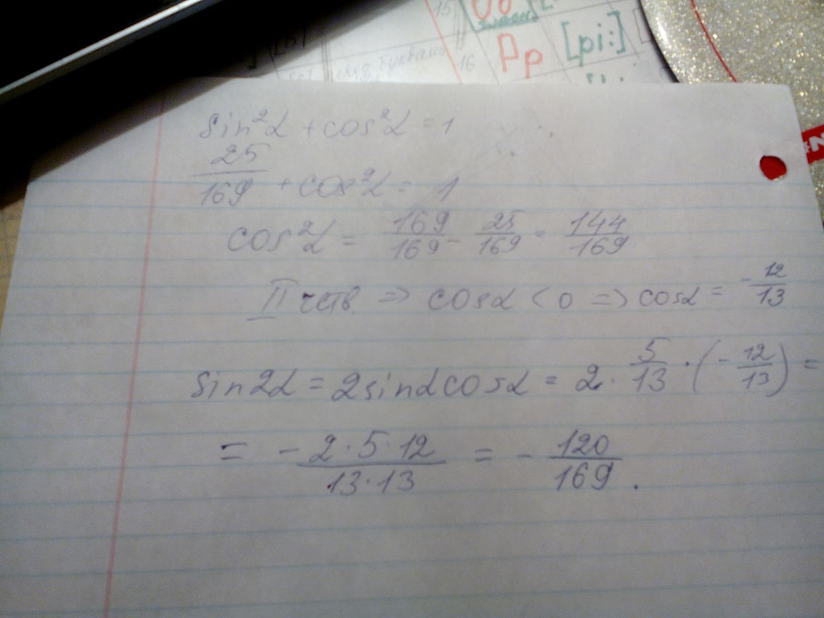 известно что sina=5/13 (a-угол 2 четверти) Найдите sin 2a?