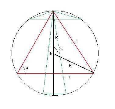 Я нарисовал осевое сечение - равнобедренный треугольник, вписанный в окружность.
