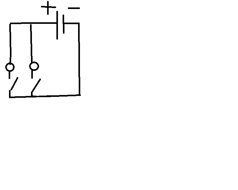 Нарисуйте, пожалуйста, схему соединения батарейки, двух лампочек и двух ключей, при которой включение и выключение каждой лампочки производится "своим" ключом.