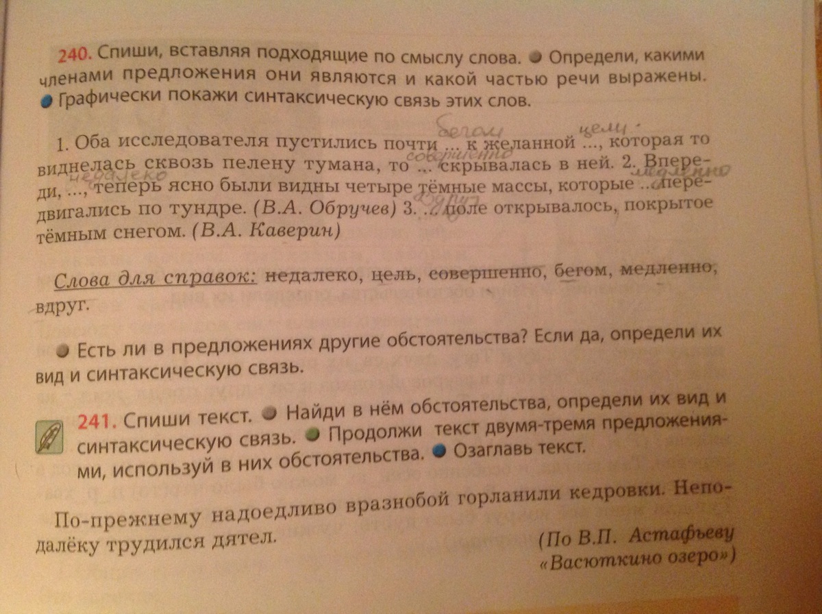 Вместо пропусков нужно вставить слова:(Недалеко, цель,совершенно,бегом,медленно,вдруг)