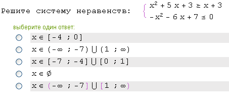 х2=6-8/2*(-1)=-2/-2=1 - решение второй системы (-∞; -7]cup [1; ∞)