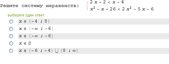 х2=-6-14/2*(-1)=-20/-2=10 - решение первой системы : (-∞; -4]cap [10; ∞)