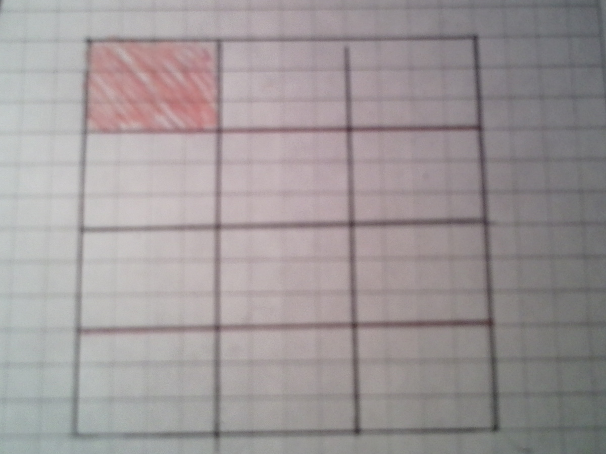 если 6 см каждая сторона, то каждый квадратик получится по 2 см в длину, 1.5 в ширину