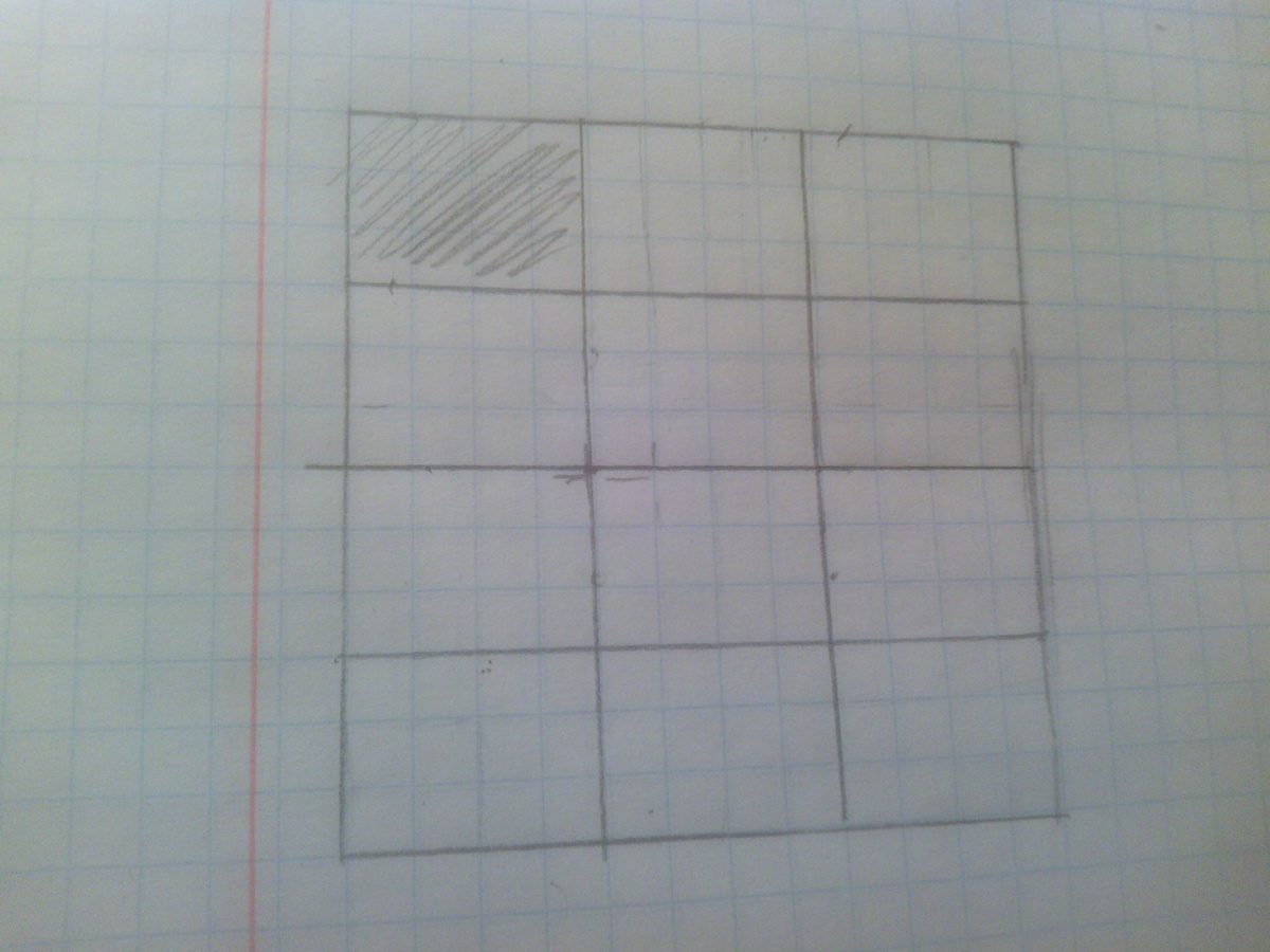 начерти в тетрадеи квадрат со стороной 6см. разбей его на 6 равных квадратов. раздели каждый из них ещё на 2равных части . закрась одну двенцатою часть юольшого квадрата.
