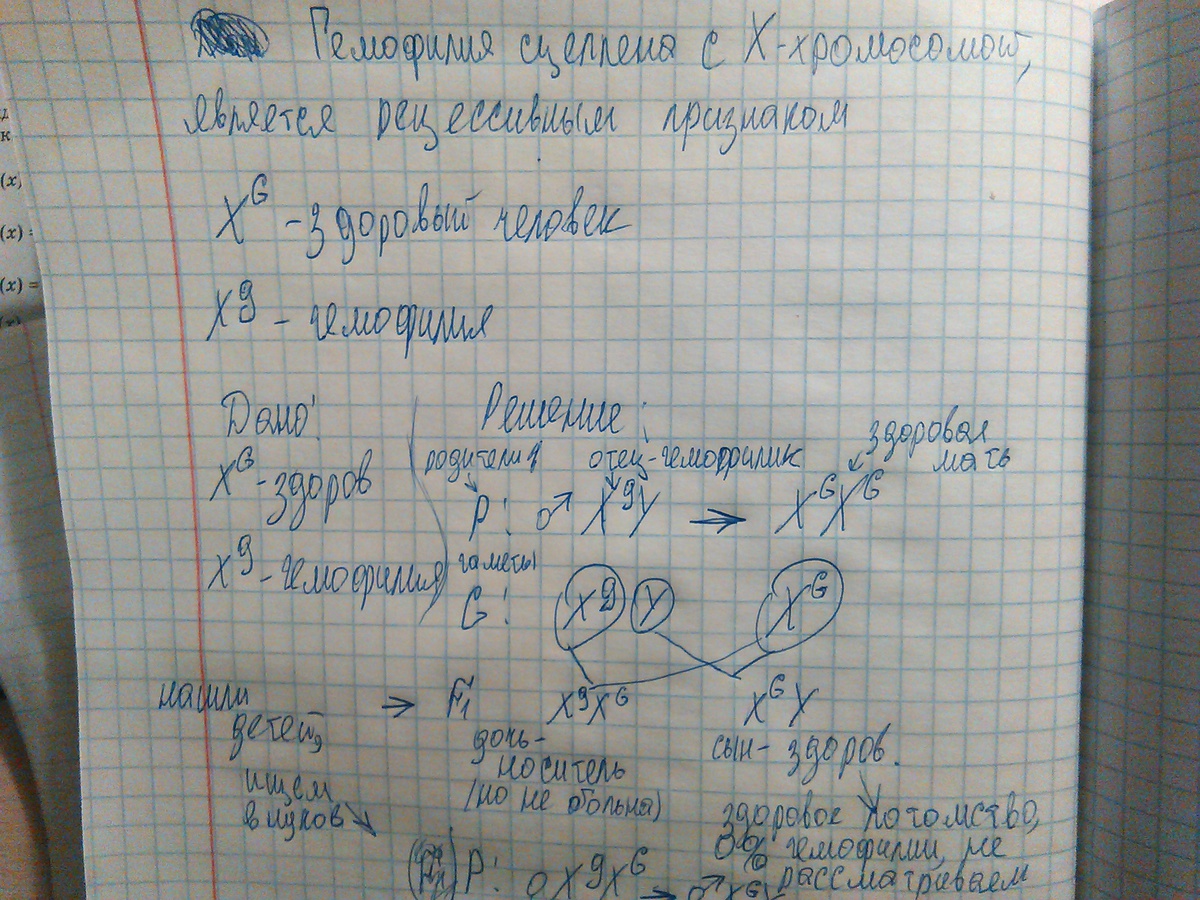 Дети отца-гемофилика и здоровой матери вступают в брак со здоровыми людьми. Какова вероятность появления гемофилии у внуков?