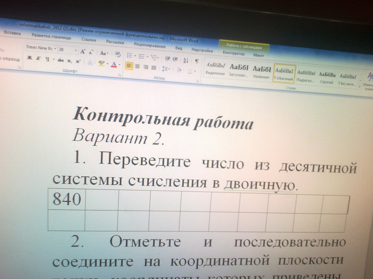 Перевести число 840 из десятичной системы счисления в двоичную