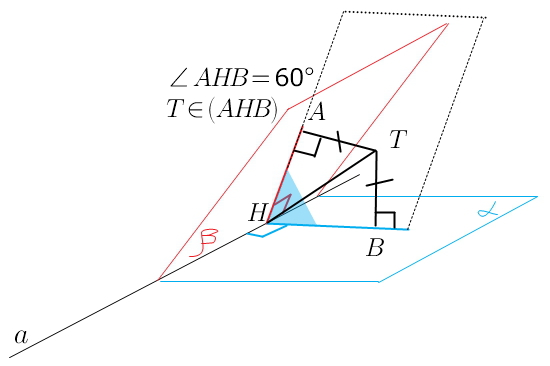 по построению AH _|_ (a), BH _|_ (a), угол АНВ = 60°