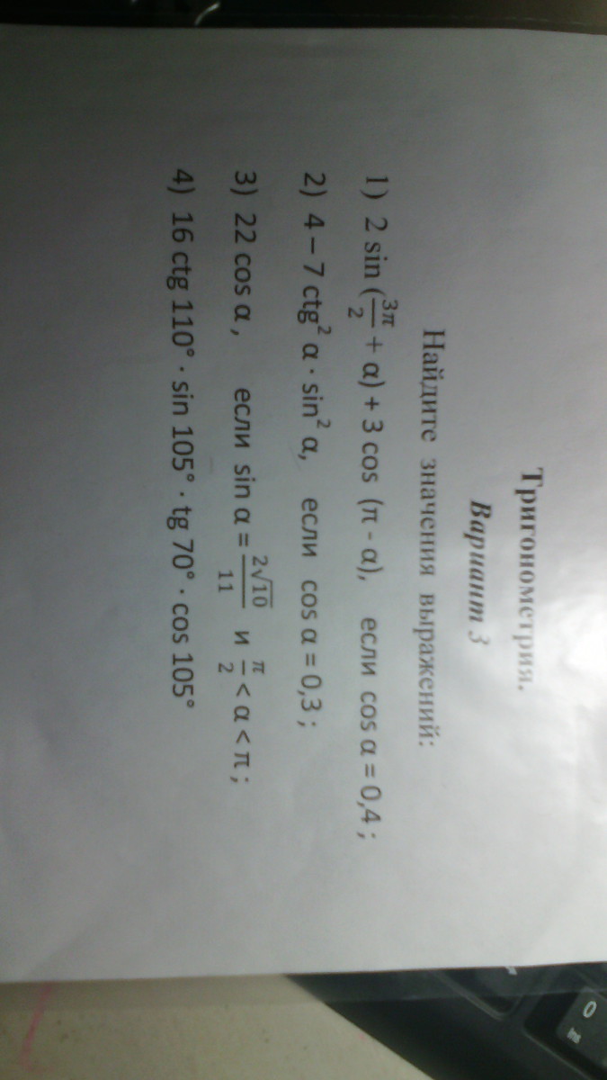 б)4-7ctg²α·sin²α=4-7cos²α\sin²α·sin²α=4-7cos²α cosα=0.3
