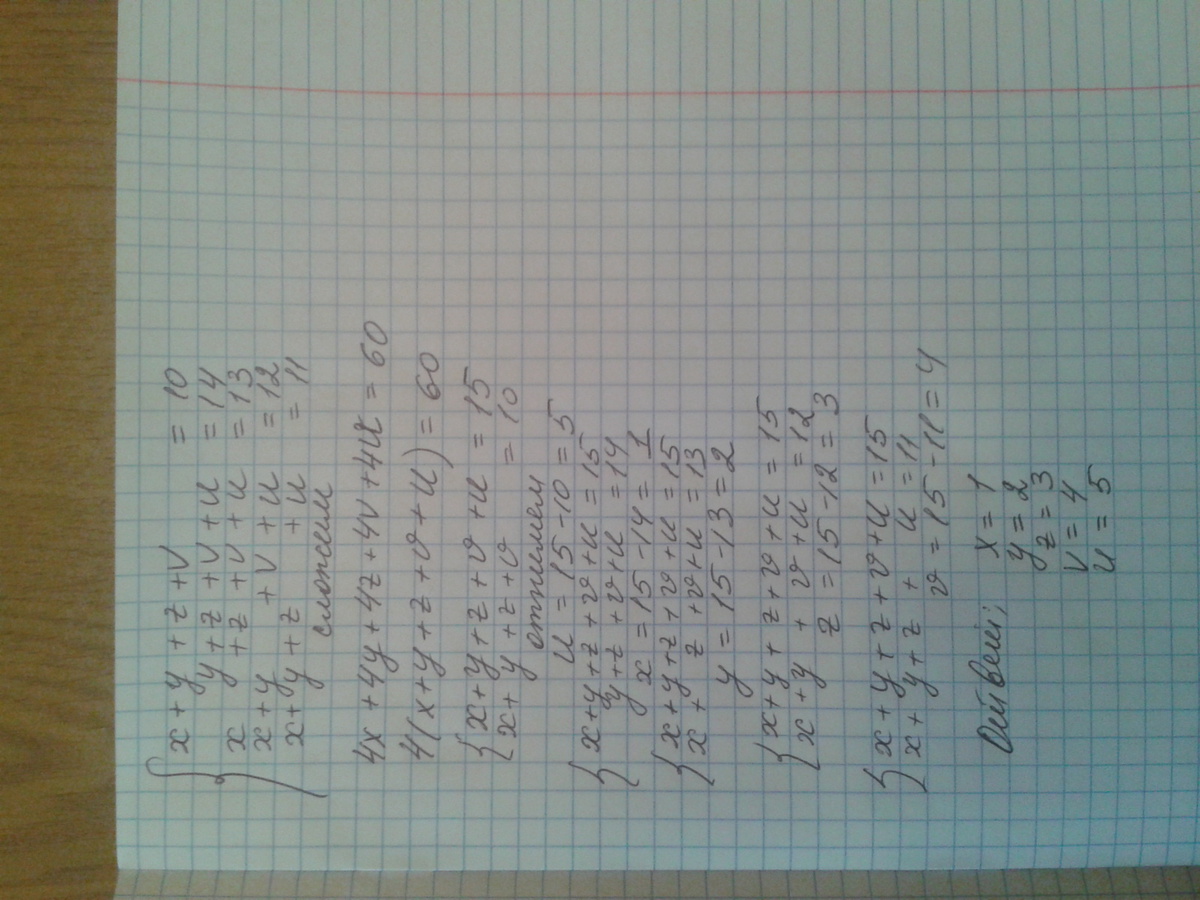 y+z+v+u=14