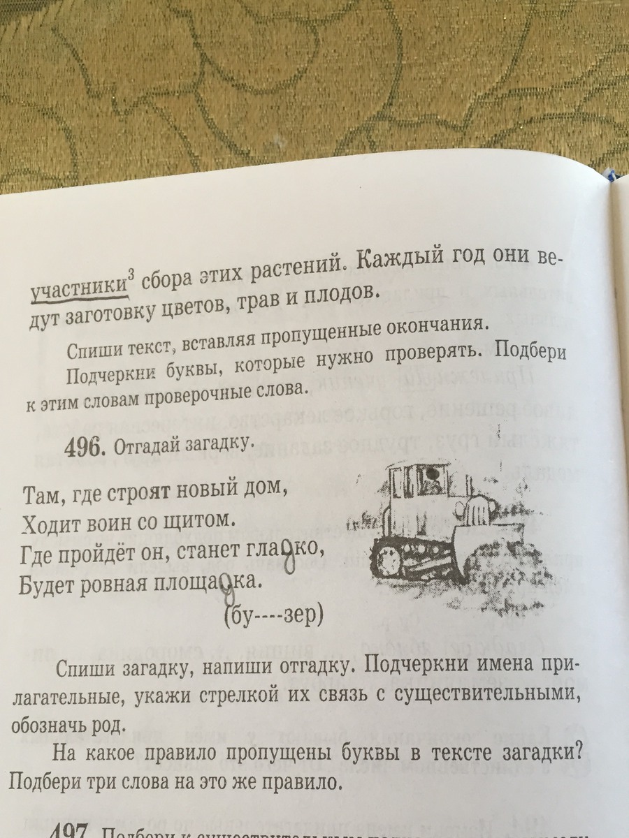 Упражнение 496подчеркни им прилагательные,укажи стрелкой их связь с существительными,обозначьте род.На какое правило пропущены буквы в тексте загадки? Подбери три слова на это же правило