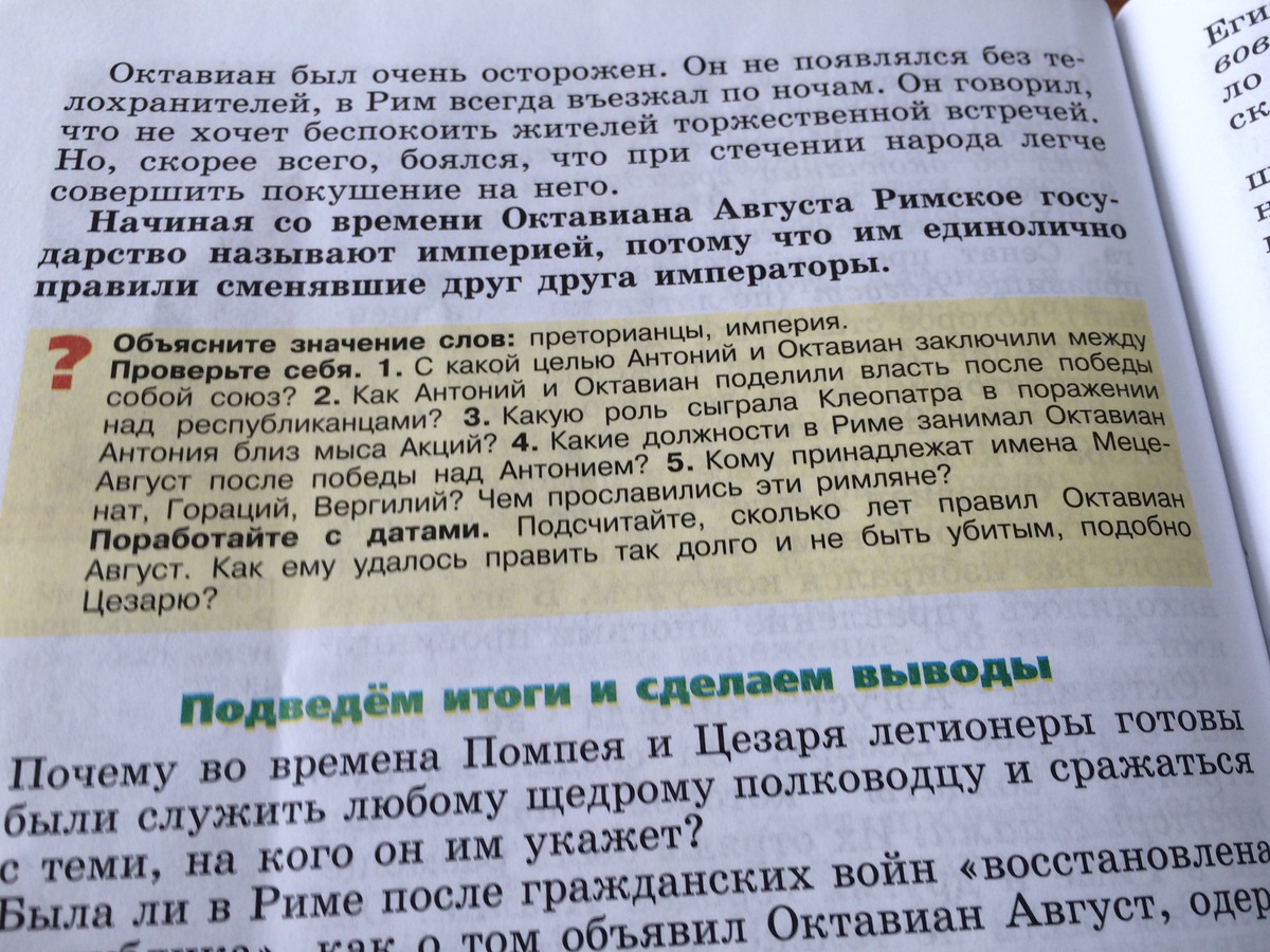 3) У Клеопатры и Антония был роман и ее войска помогли противостоять римлянам. Но когда египтяне увидели что их царица уплывает они обратились в бегство и римляне победили. Октавиан стал Цезарем и августейшим, тем самым стал верховным правителем Рима.